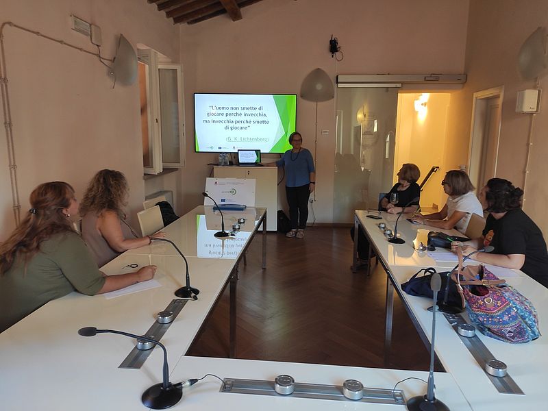 2) Il secondo incontro formativo dal titolo ”Il gioco è una cosa seria” è stato centrato su come stimolare la mente, il corpo e le abilità sociali degli anziani attraverso il gioco ed è stata una formazione propedeutica alla realizzazione dell’evento: Io gioco, tu giochi noi giochiamo.Si è infatti imparato a riconoscere il potere dei giochi per migliorare la qualità della vita, sostenere la salute mentale e costruire relazioni umane autentiche negli anziani. Sono stati anche presentati alcuni giochi appositamente pensati e adattati per essere utilizzati nell’evento sopra menzionato. Relatrice di questo secondo incontro è stata la dott.ssa Angela Bulzinetti (pedagogista).