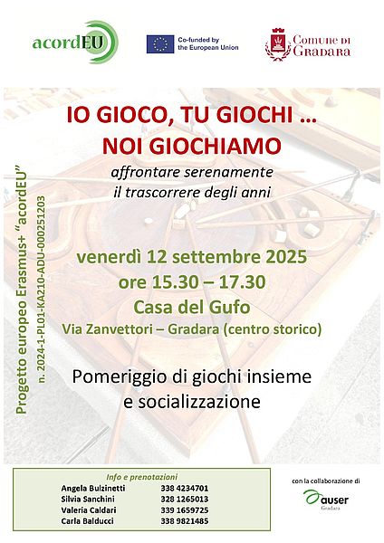 Io gioco, tu giochi noi giochiamo è una attività che il Comune di Gradara ha deciso di organizzare il 12 settembre 2025 a favore di circa 30 persone anziane interessate a parteciparvi.